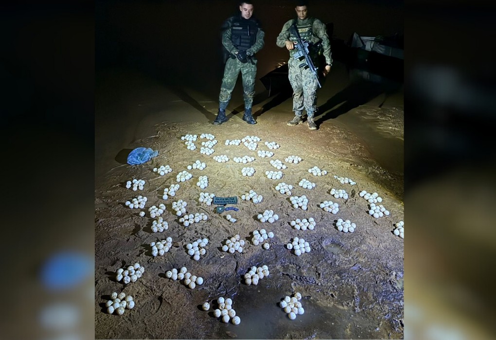 Na madrugada deste sábado (4), equipes da Polícia Militar Ambiental (BPMA) localizaram uma embarcação que transportava tartarugas-da-amazônia vivas e mais de 500 ovos de tartaruga marinha. As espécies eram transportadas pelo Rio Araguaia sem autorização dos órgãos competentes. Dois suspeitos presos também estavam com ​quase meia tonelada de pescado.