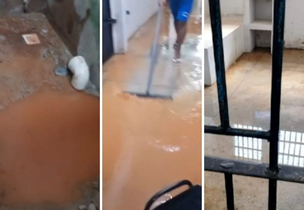 As imagens divulgadas nas redes sociais e exibidas pela TV Anhanguera mostram a unidade alagada e o sistema de esgoto transbordando, com os próprios internos trabalhando na limpeza.