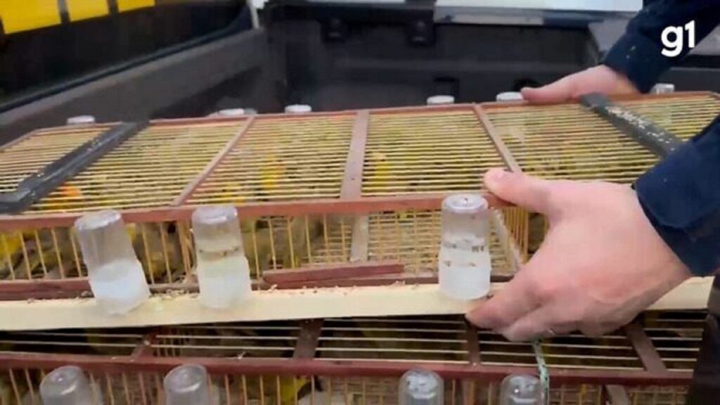 Ao verificarem o porta-malas, os policiais encontraram diversas gaiolas contendo pássaros da espécie canário-da-terra. Segundo a PRF, as aves estavam confinadas sem qualquer ventilação, em condições extremamente precárias.